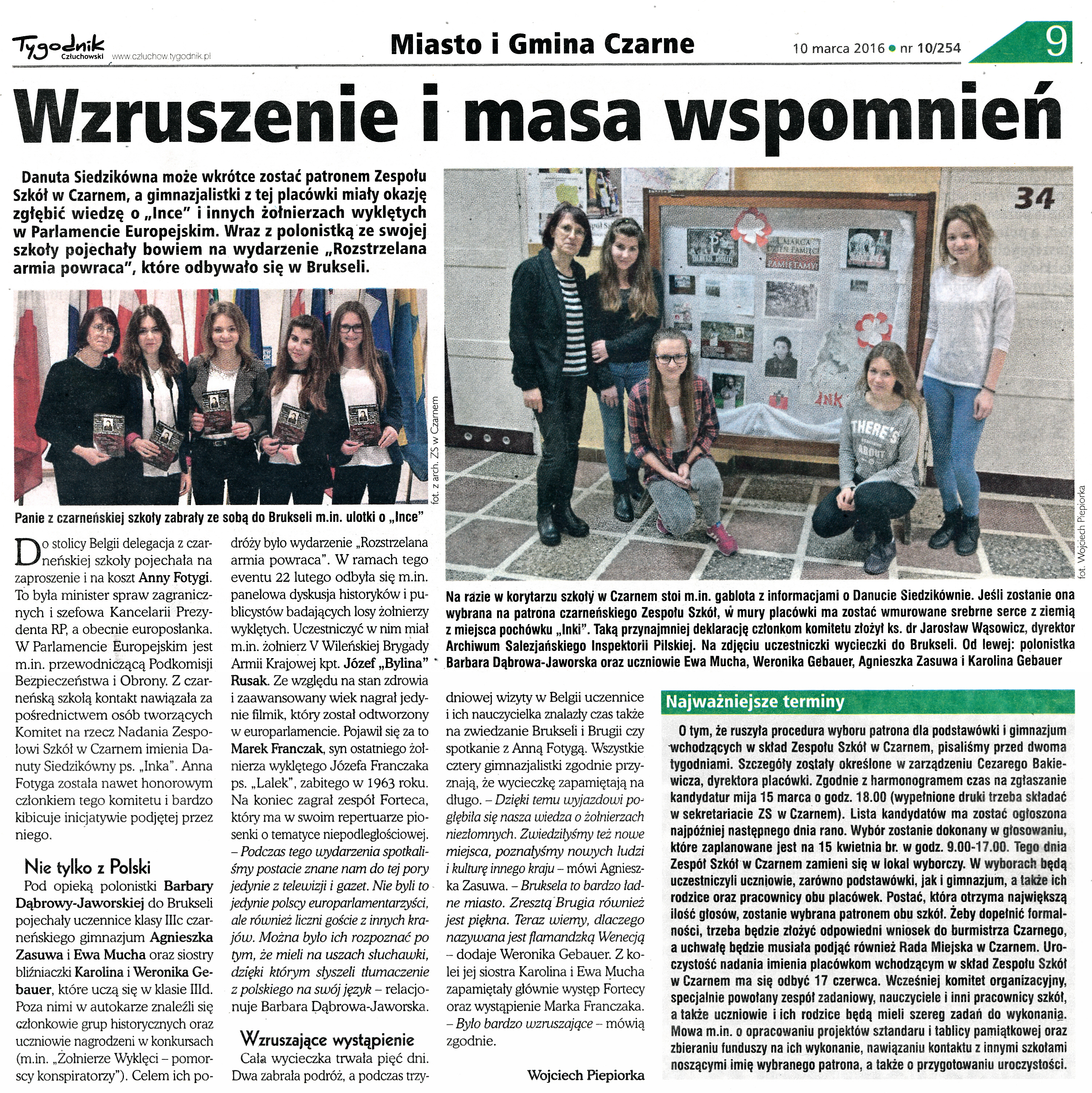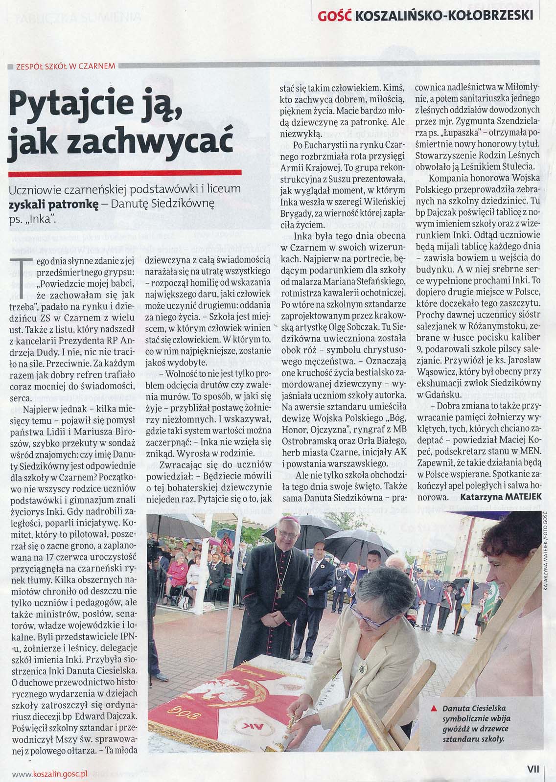 Nadanie imienia Danuty Siedzikówny ps Inka Zespołowi Szkół w Czarnem - 17 czerwca 2016 r.