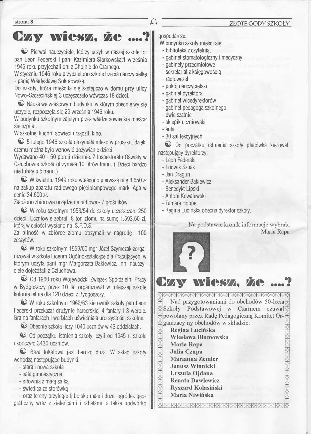 Zarządzenie nr 8/2024/2025 Dyrektora Szkoły Podstawowej im. Danuty Siedzikówny ps.Inka w Czarnem z dnia 3 marca 2025 r.