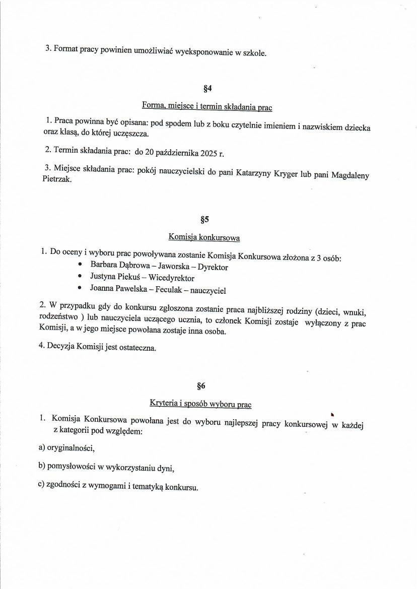 Związku z tym, że przestrzenne prace konkursowe to świeża dynia prosimy o przynoszenie swoich dzieł w czasie zbliżonym do terminu oddania prac.
