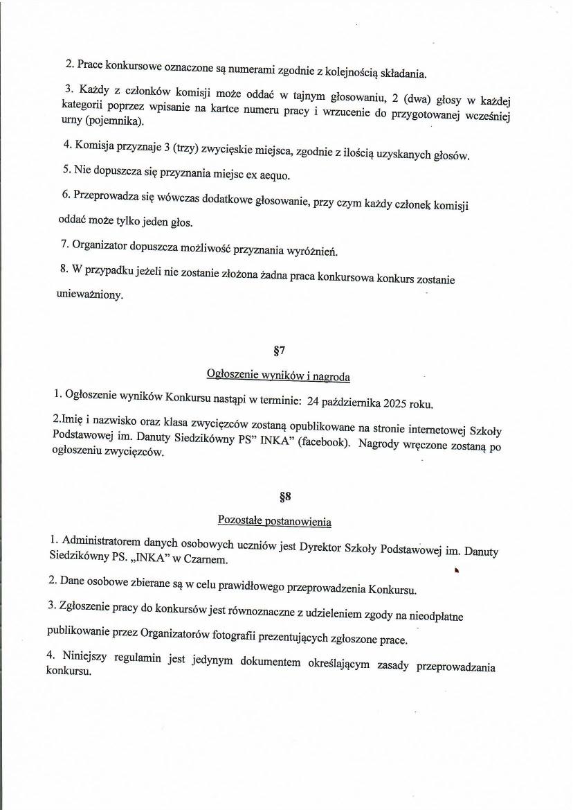 Zarządzenie nr 8/2024/2025 Dyrektora Szkoły Podstawowej im. Danuty Siedzikówny ps.Inka w Czarnem z dnia 3 marca 2025 r.