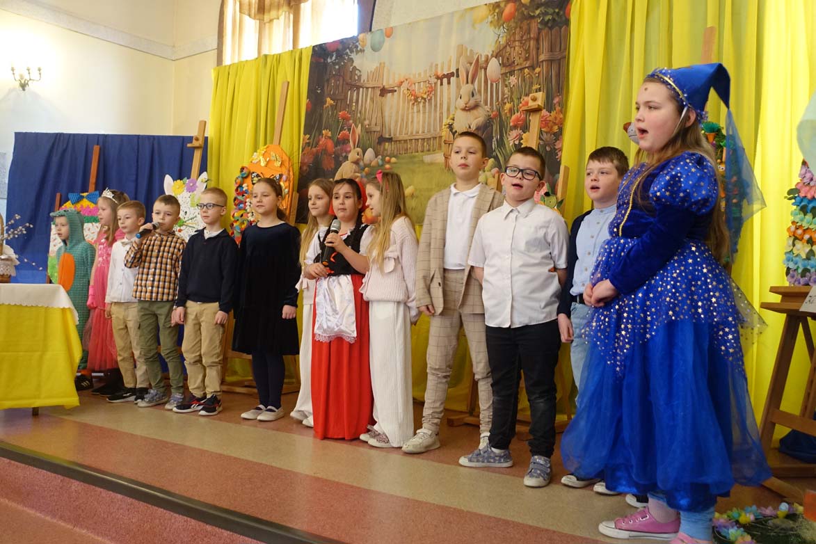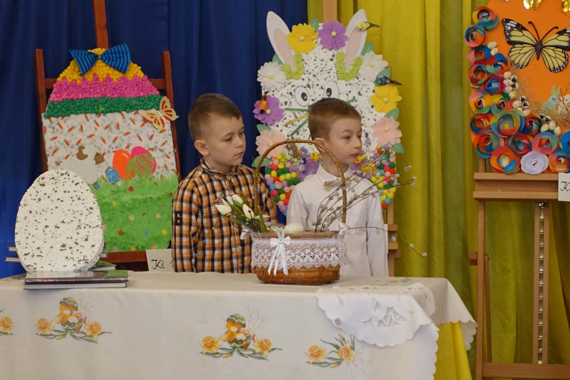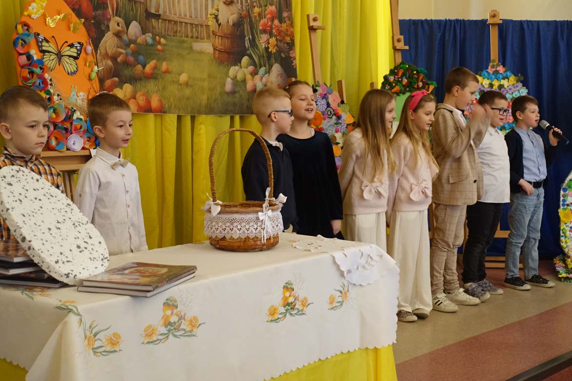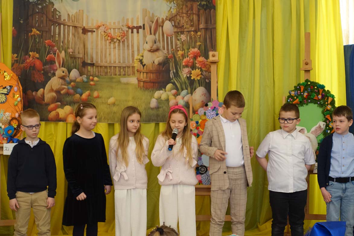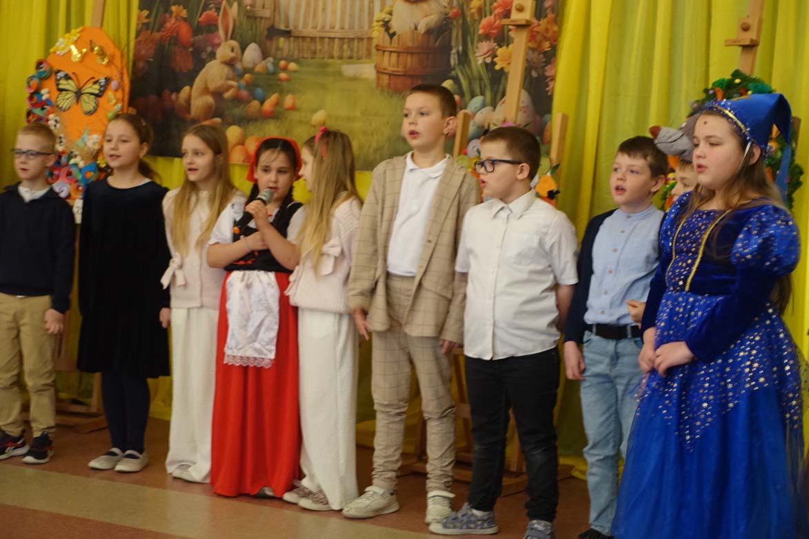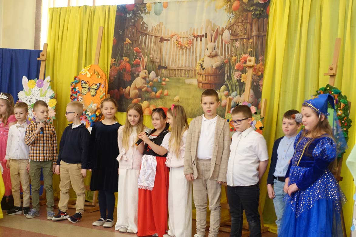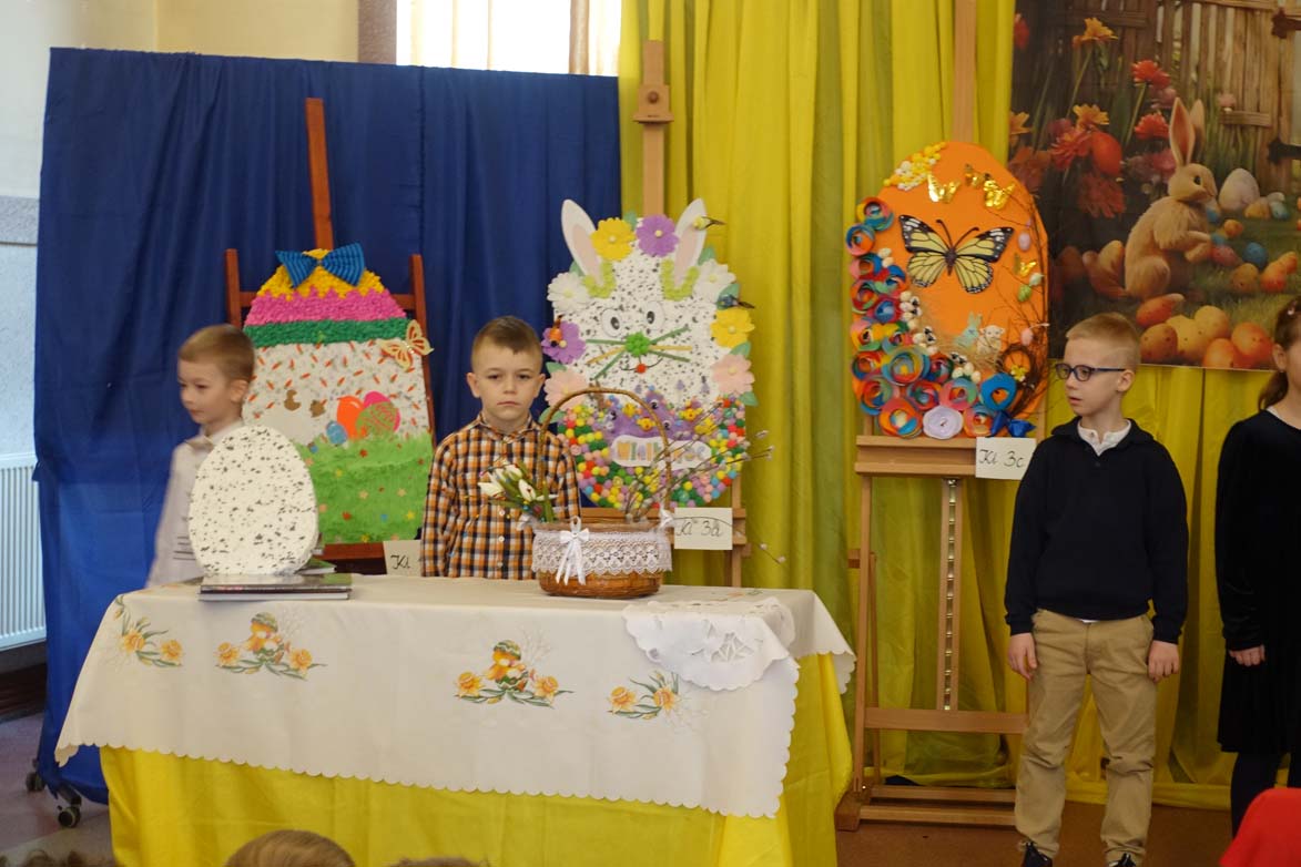 Uczniowie kl.1b (wych. Jolanta Kolasińska ) przygotowali senkę teatralną pt. "Koszyk wielkanocny ". Występ zaprezentowali 20.03.2026 dla uczniów kl.1-3 i swoich najbliższych, a przed świętami odwiedzą również DPS i przedszkole. Na zakończenie ogłoszono wyniki konkursu plastycznego "Wielkanocne jajo" (organizatorki Joanna Chabros, Jolanta Kolasińska ) .Wyniki konkursu: I m-ce Klasa 2c, II m-ce Klasy 3b i 3c. III m-ce Klasy 1b, 1c, 2a, 2b, 3a. Gratulujemy i życzymy Wesołych Świąt Wielkanocnych.
