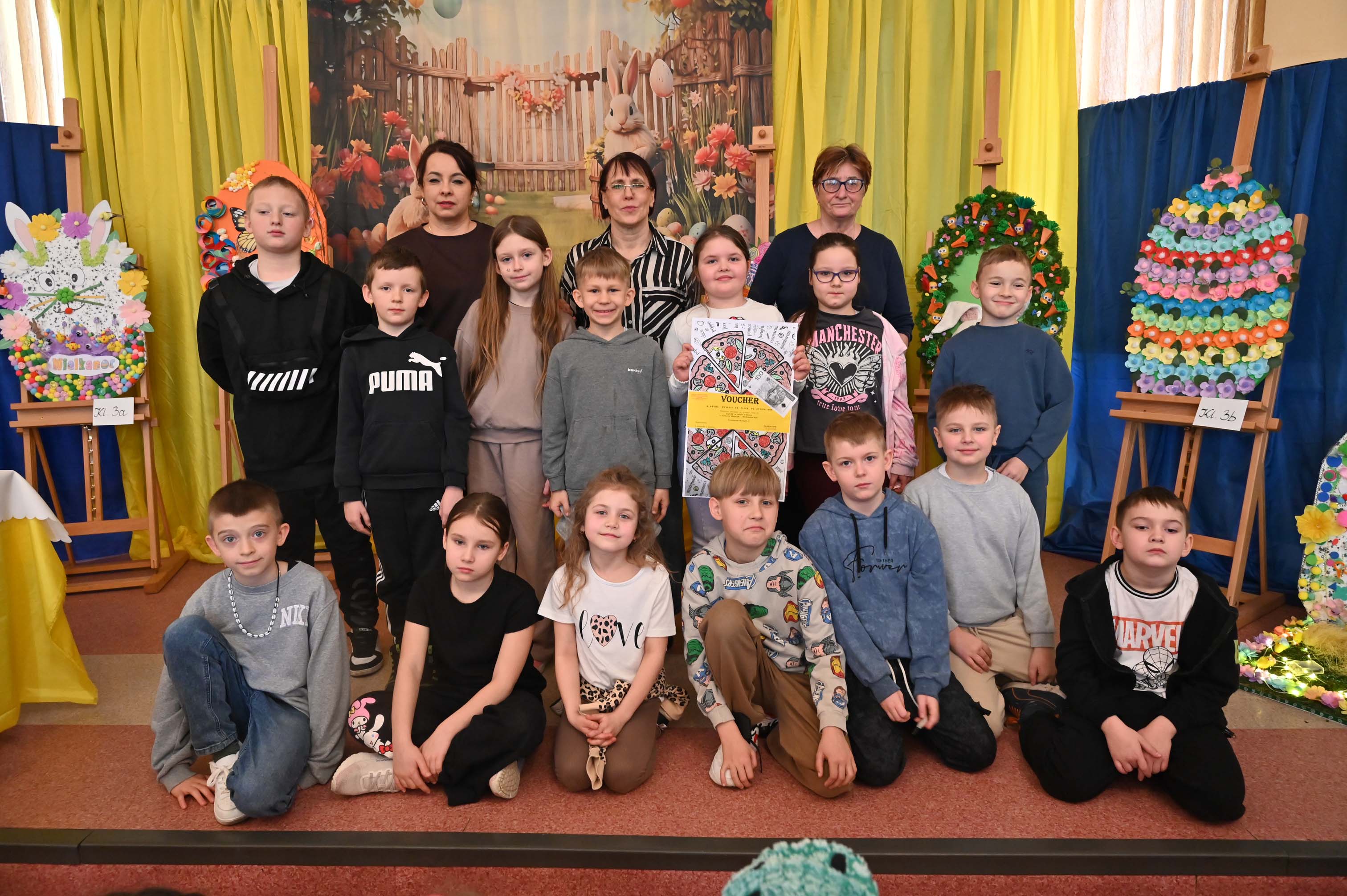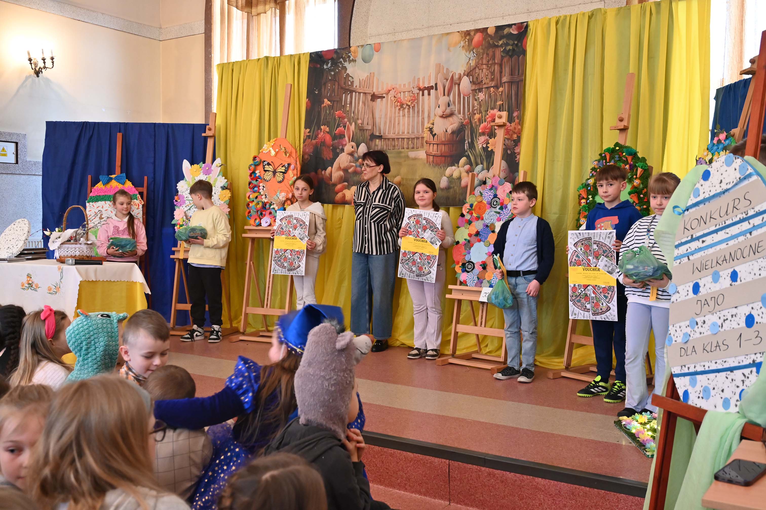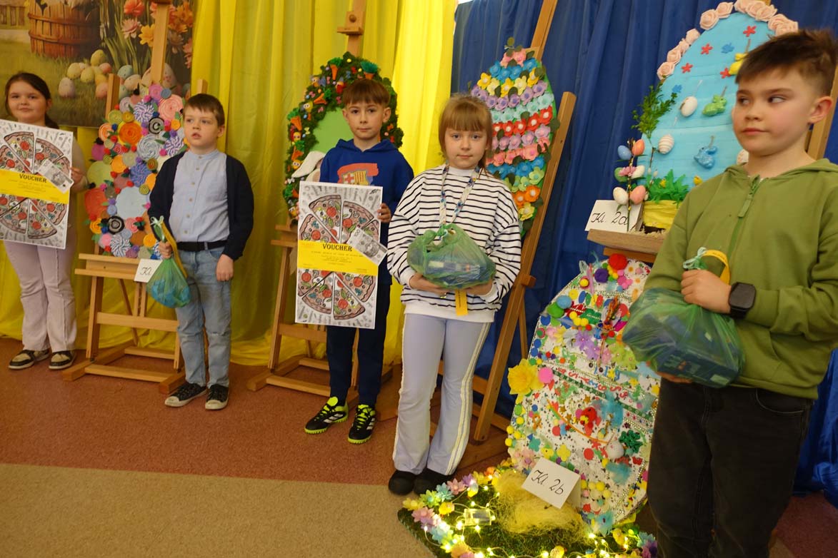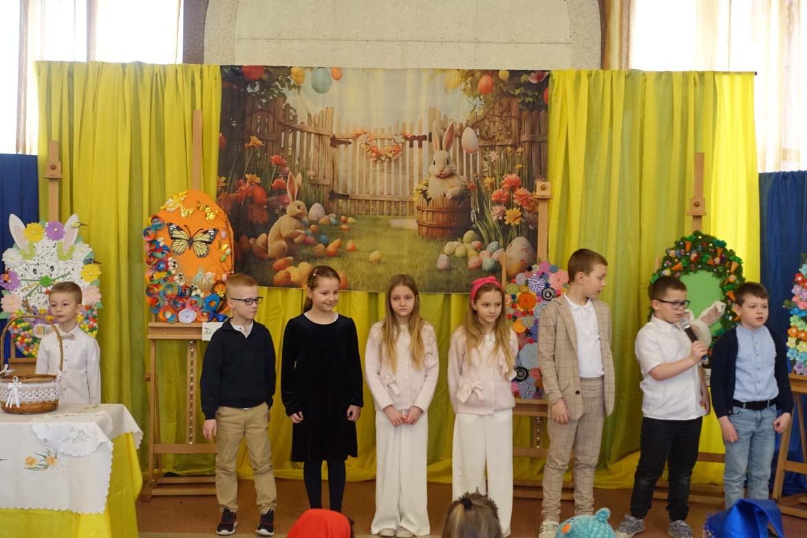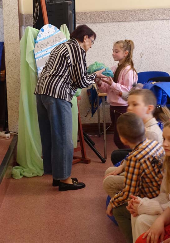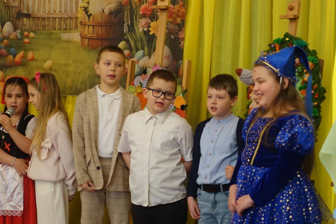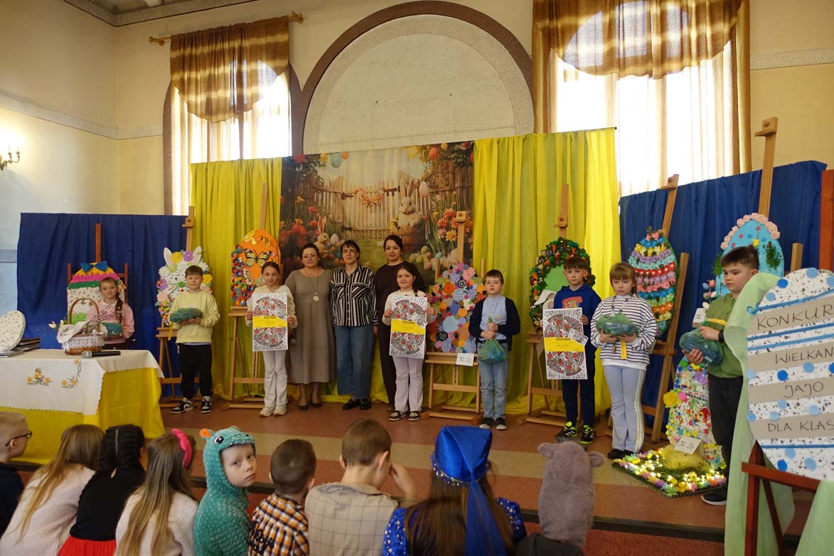 Uczniowie kl.1b (wych. Jolanta Kolasińska ) przygotowali senkę teatralną pt. "Koszyk wielkanocny ". Występ zaprezentowali 20.03.2026 dla uczniów kl.1-3 i swoich najbliższych, a przed świętami odwiedzą również DPS i przedszkole. Na zakończenie ogłoszono wyniki konkursu plastycznego "Wielkanocne jajo" (organizatorki Joanna Chabros, Jolanta Kolasińska ) .Wyniki konkursu: I m-ce Klasa 2c, II m-ce Klasy 3b i 3c. III m-ce Klasy 1b, 1c, 2a, 2b, 3a. Gratulujemy i życzymy Wesołych Świąt Wielkanocnych.