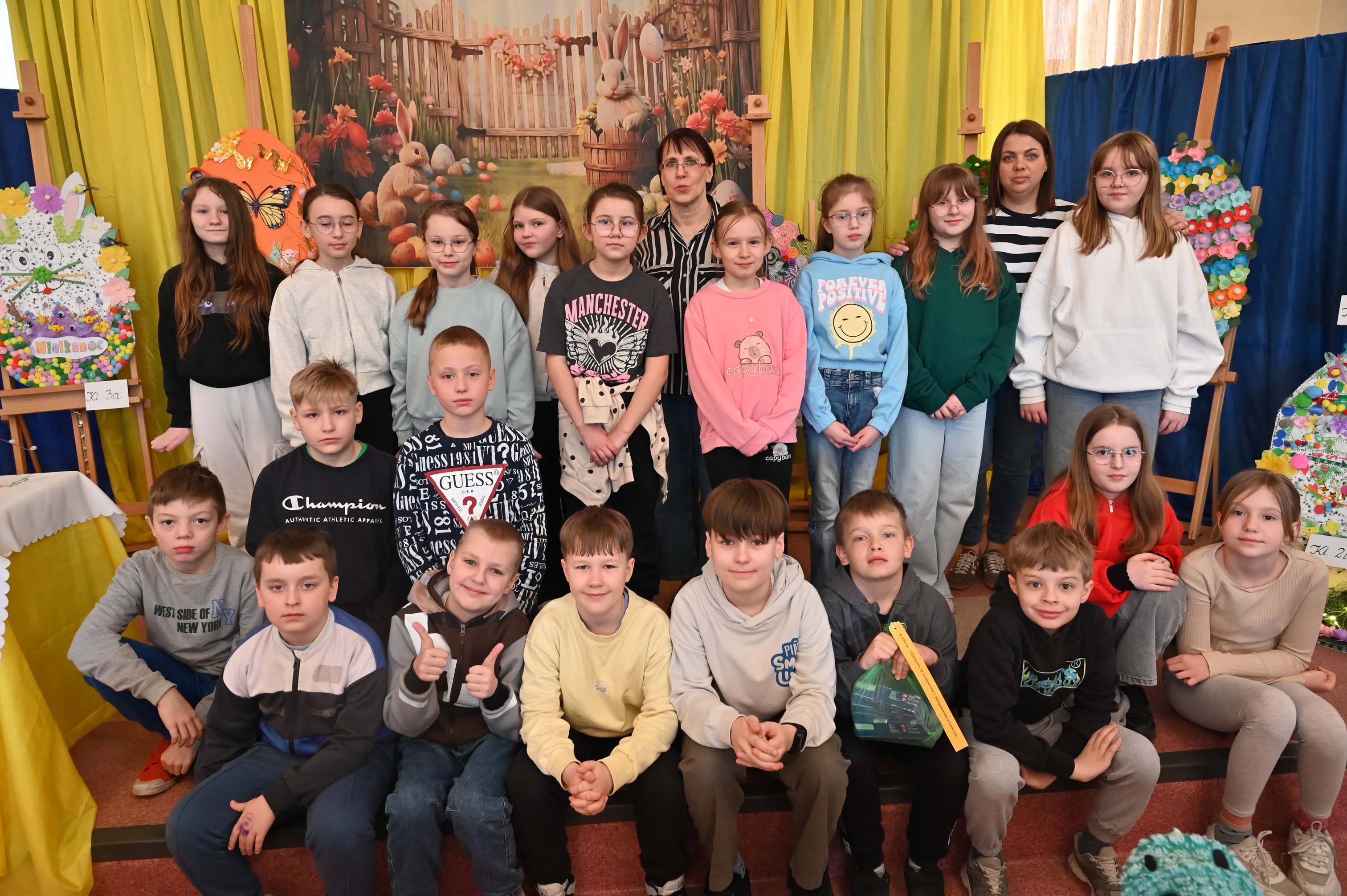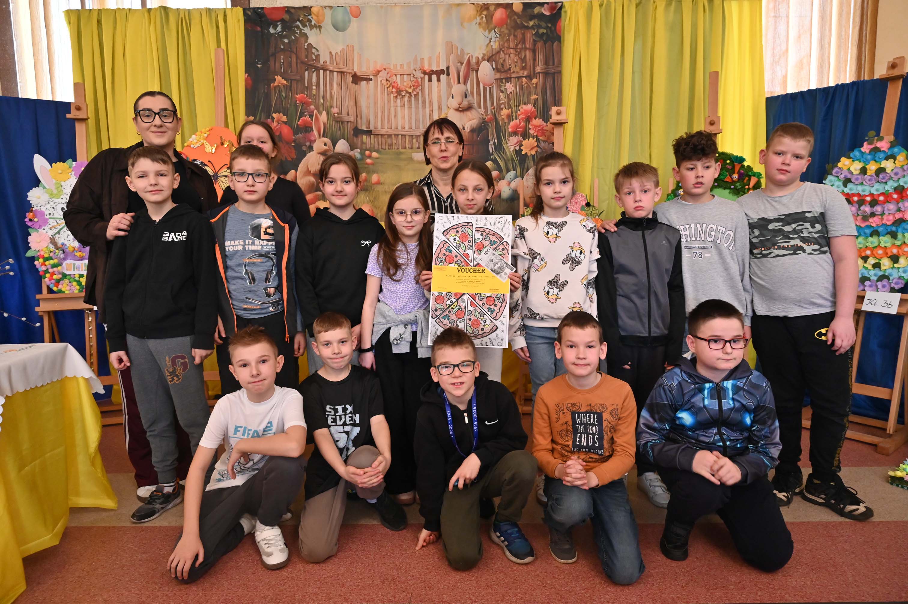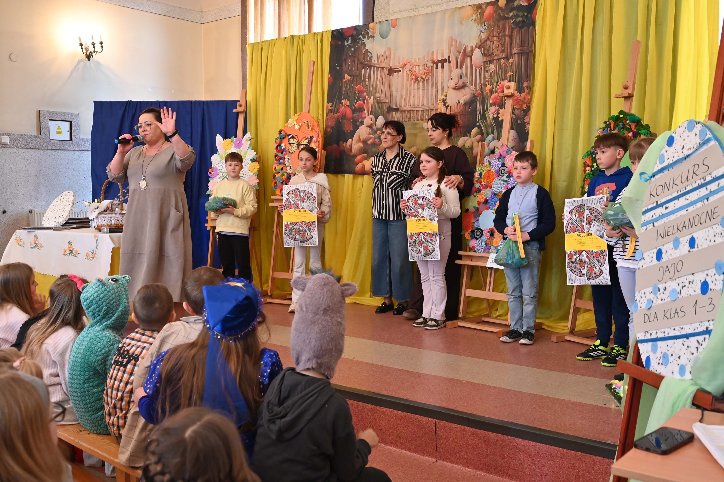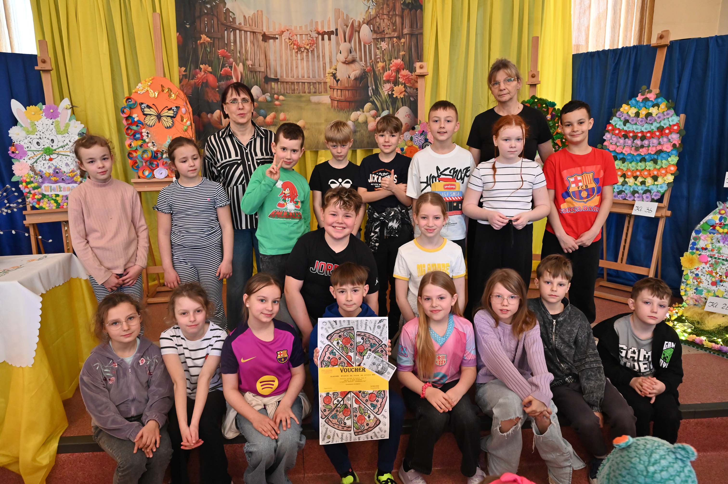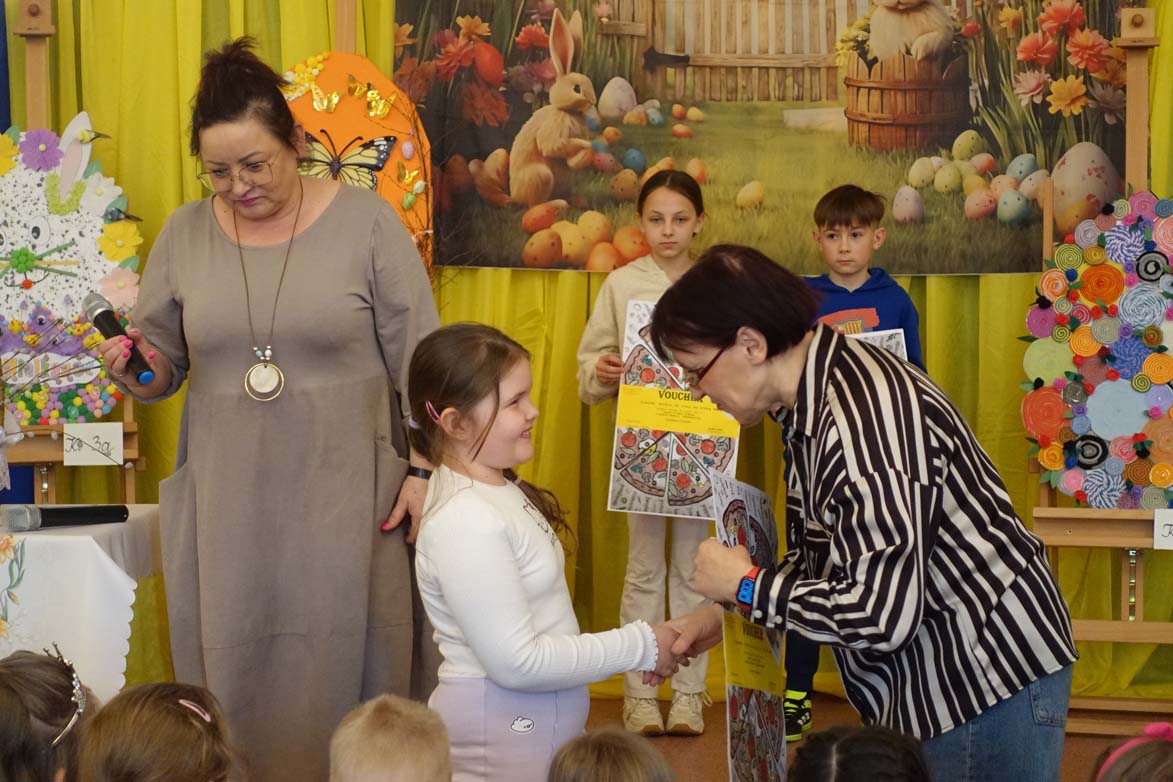 Uczniowie kl.1b (wych. Jolanta Kolasińska ) przygotowali senkę teatralną pt. "Koszyk wielkanocny ". Występ zaprezentowali 20.03.2026 dla uczniów kl.1-3 i swoich najbliższych, a przed świętami odwiedzą również DPS i przedszkole. Na zakończenie ogłoszono wyniki konkursu plastycznego "Wielkanocne jajo" (organizatorki Joanna Chabros, Jolanta Kolasińska ) .Wyniki konkursu: I m-ce Klasa 2c, II m-ce Klasy 3b i 3c. III m-ce Klasy 1b, 1c, 2a, 2b, 3a. Gratulujemy i życzymy Wesołych Świąt Wielkanocnych.