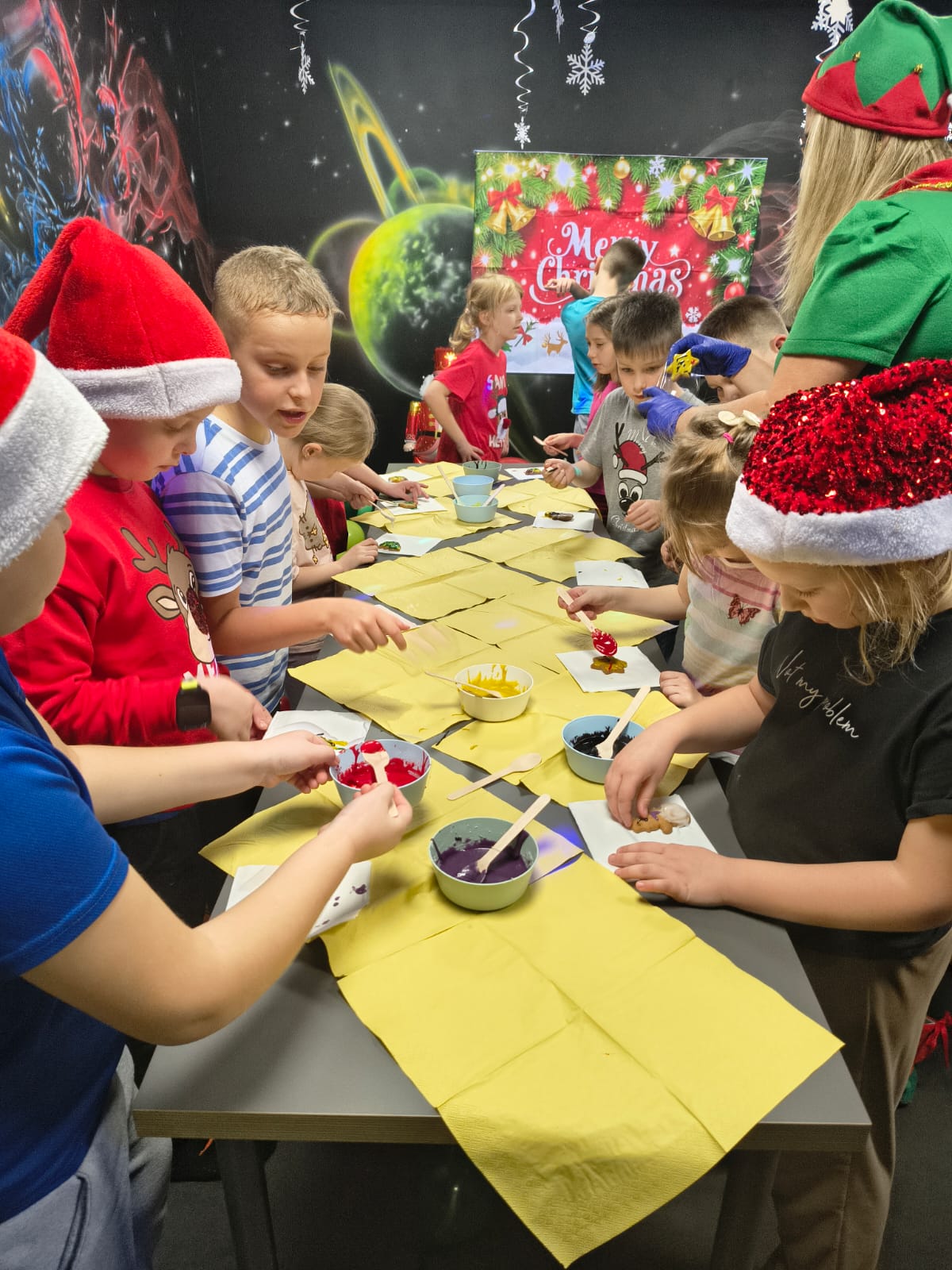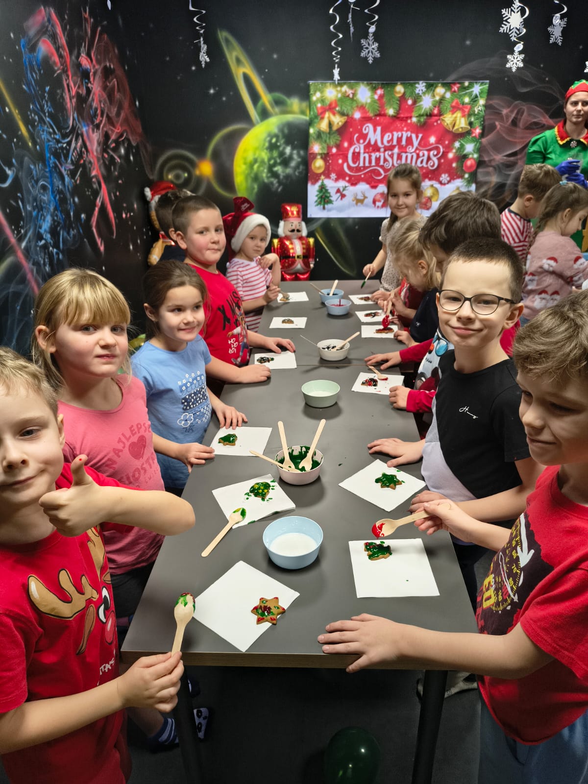 Tam Elfy wprowadziły wszystkich w prawdziwie świąteczny nastrój .✨. Były tańce, zabawy , dzieci dekorowały pierniki oraz pisały listy z życzeniami ✉️❤️.
