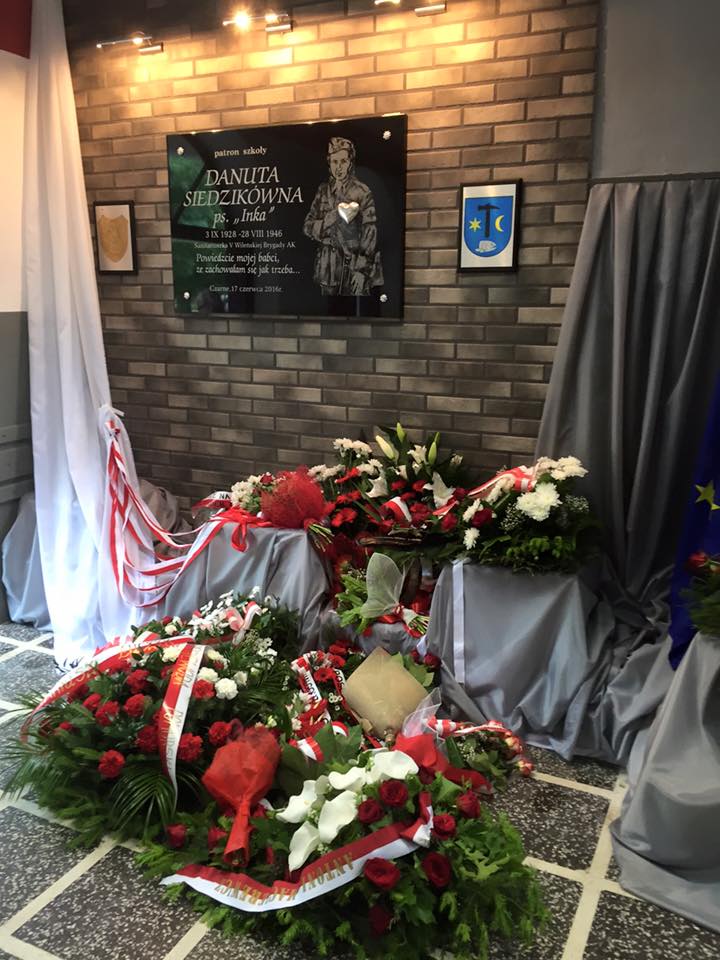 Imię Danuty Siedzikówny otrzymały szkoły w Podjazach, Ostrołęce, Wrocławiu, Kielcach, Sopocie, Ełku, Wiślinie, Polanowie oraz nasza w Czarnem, parki w Sopocie i Kartuzach, ronda w Częstochowie, Lesznie i Malborku