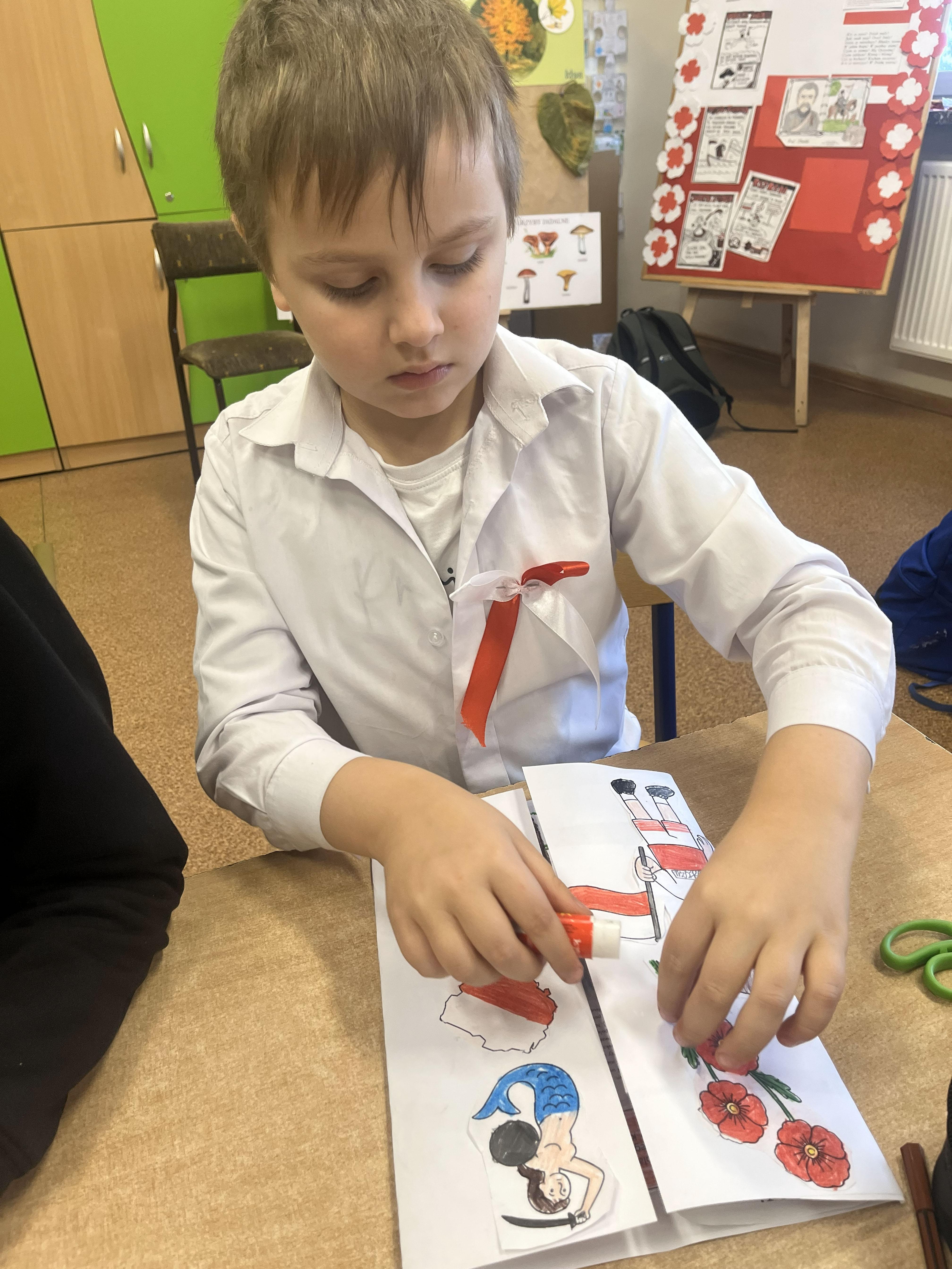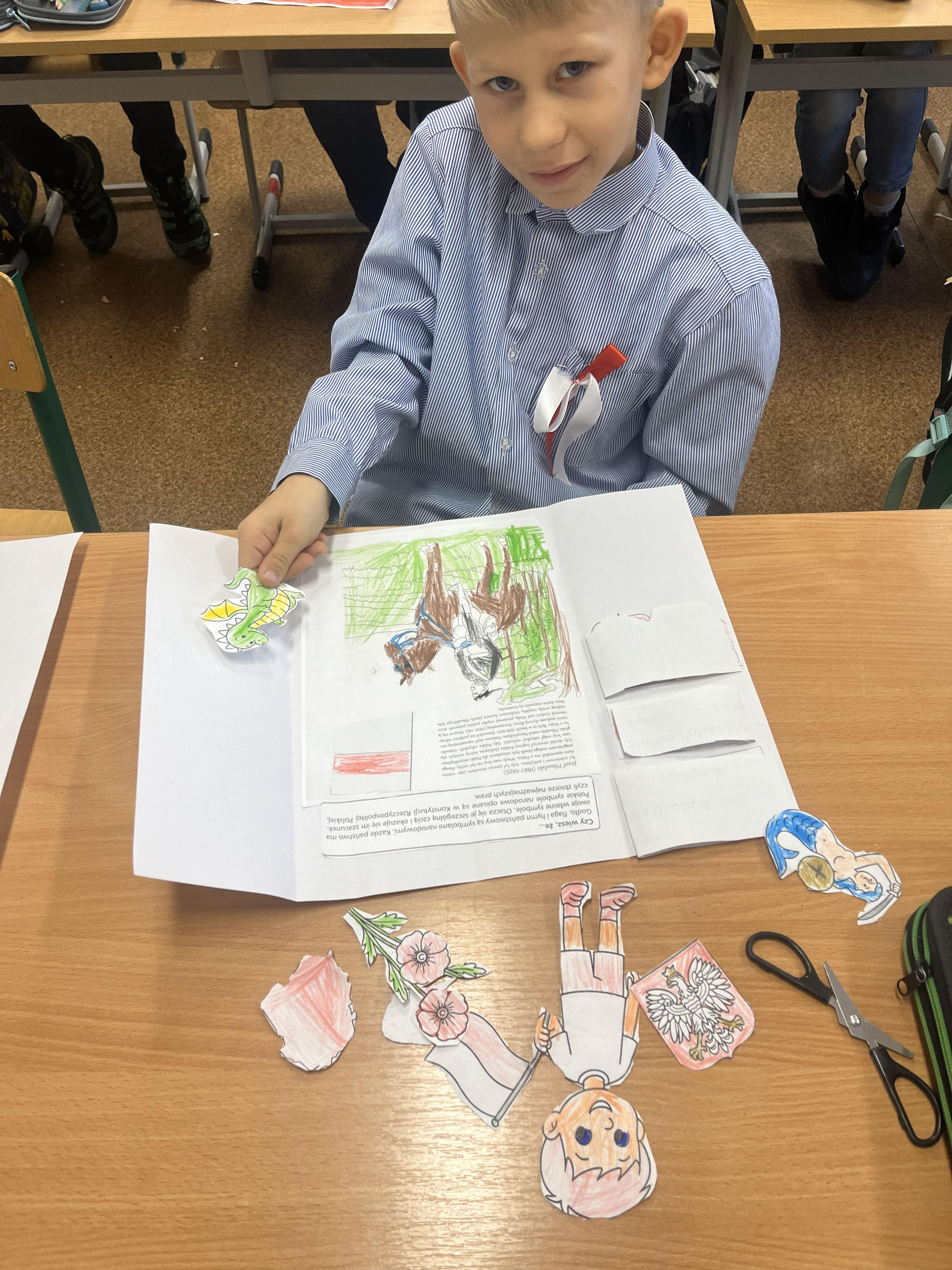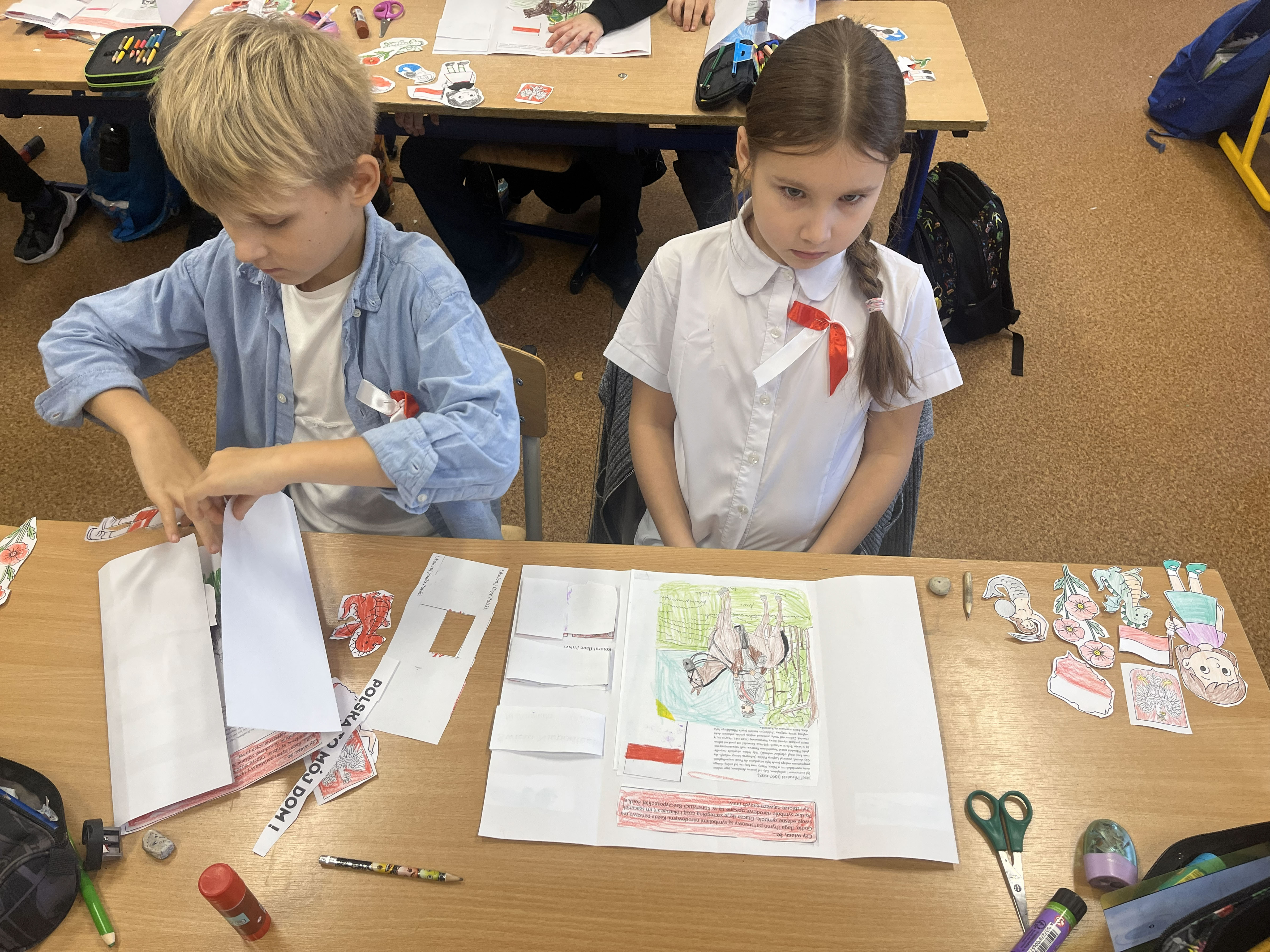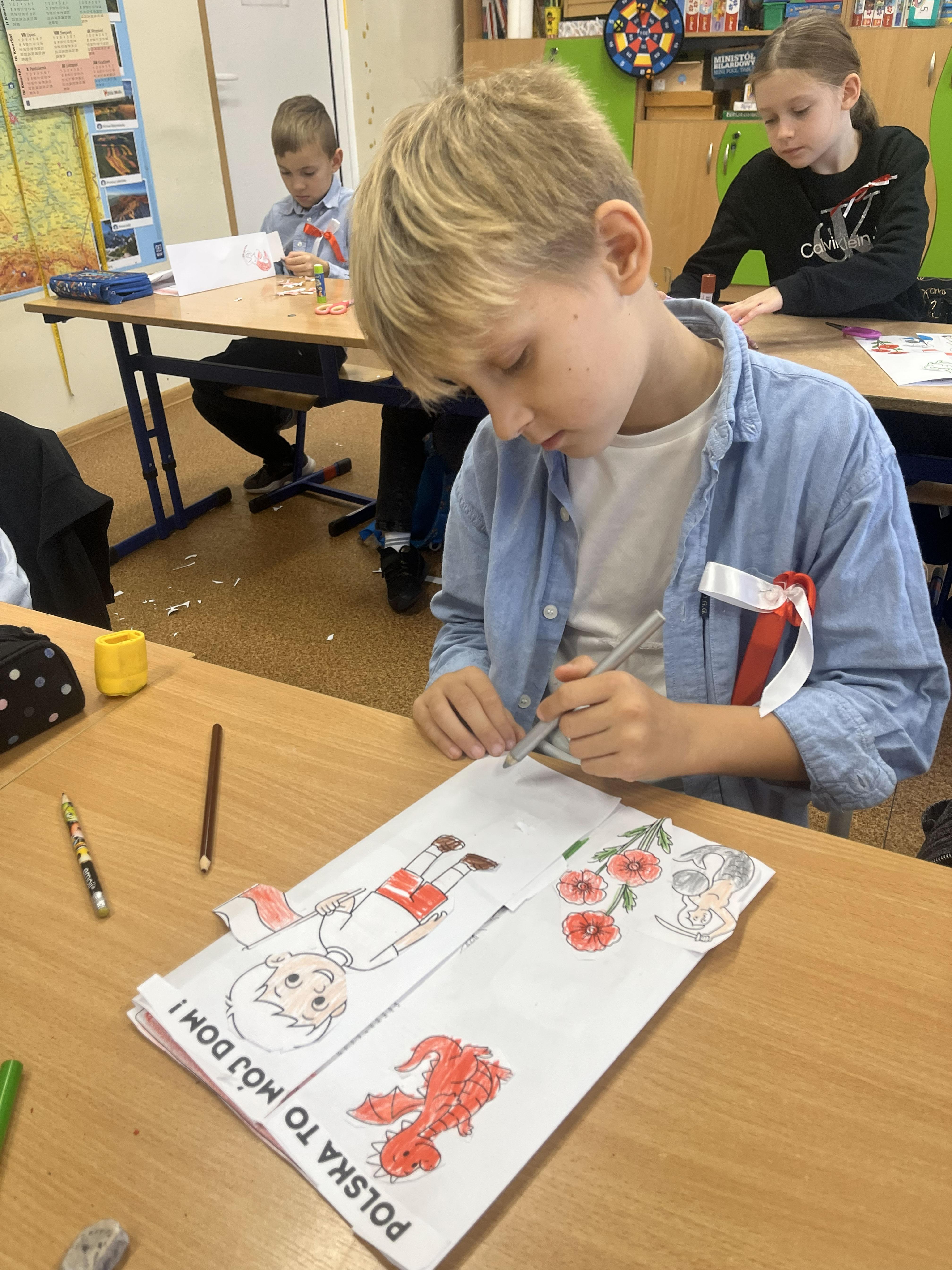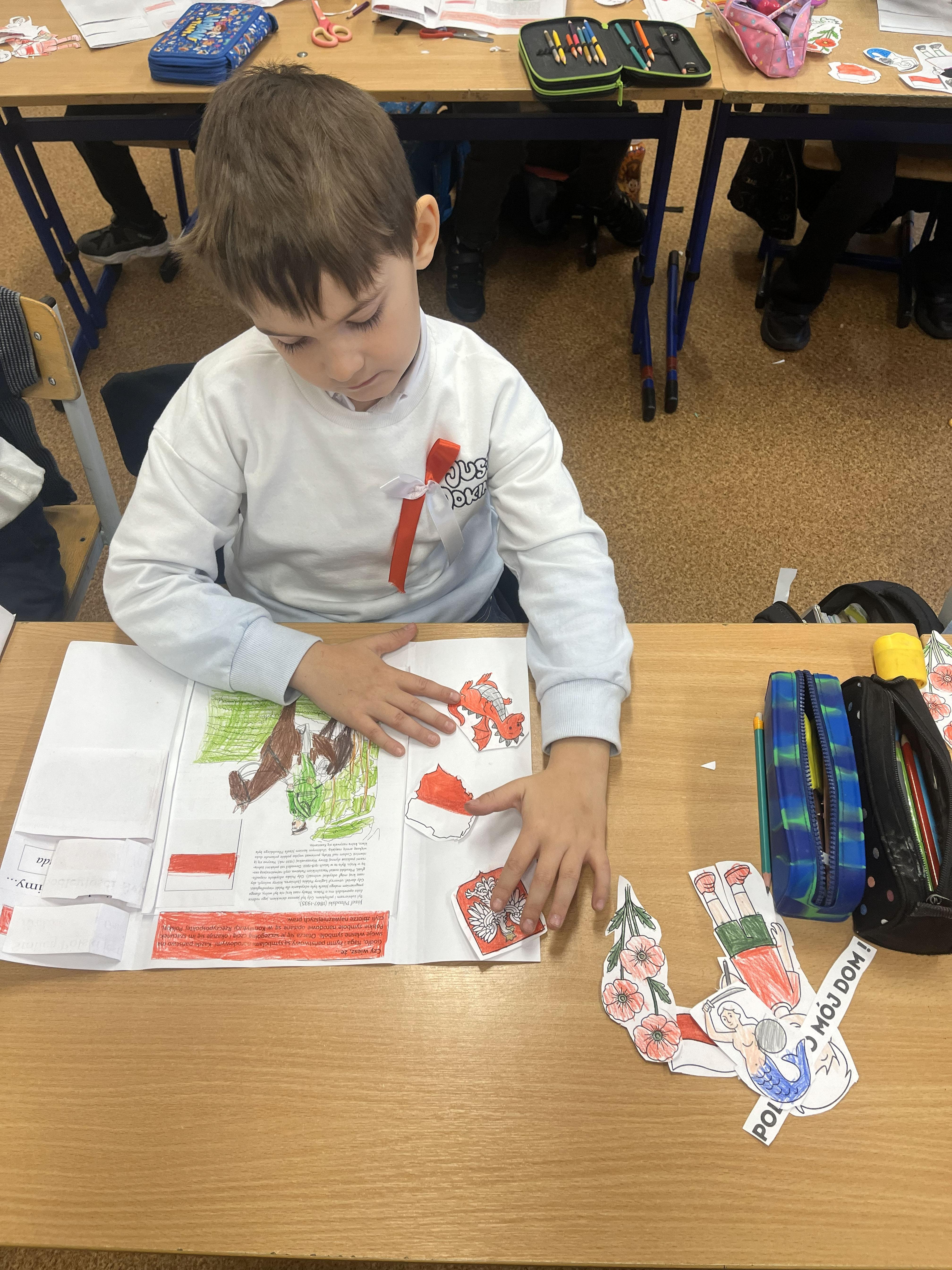 Z okazji ŚWIĘTA NIEPODLEGŁOŚCI, klasa 2c przygotowała patriotycznego lapbooka, odśpiewała hymn państwowy oraz obejrzała prezentację o odzyskaniu wolności przez Polskę.