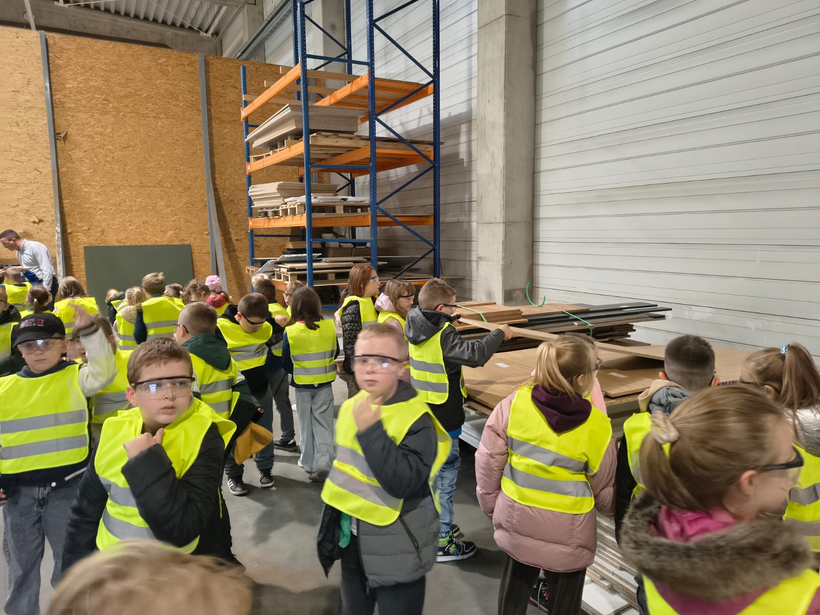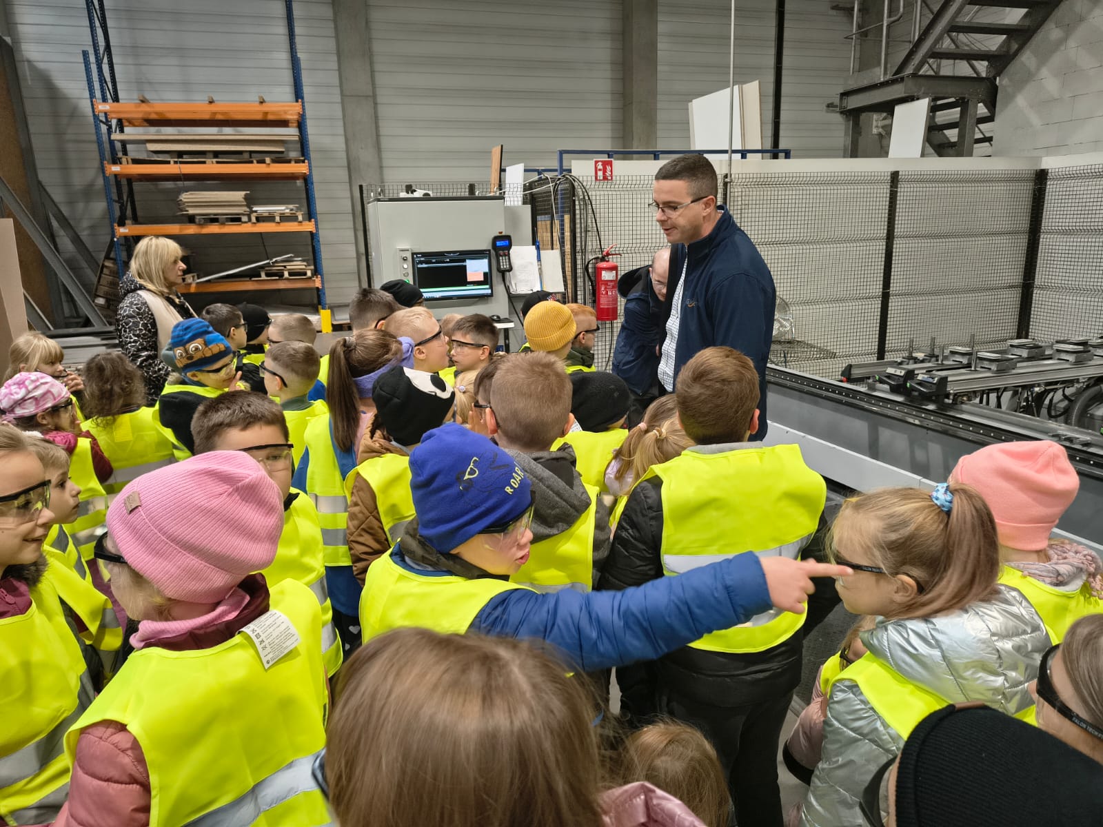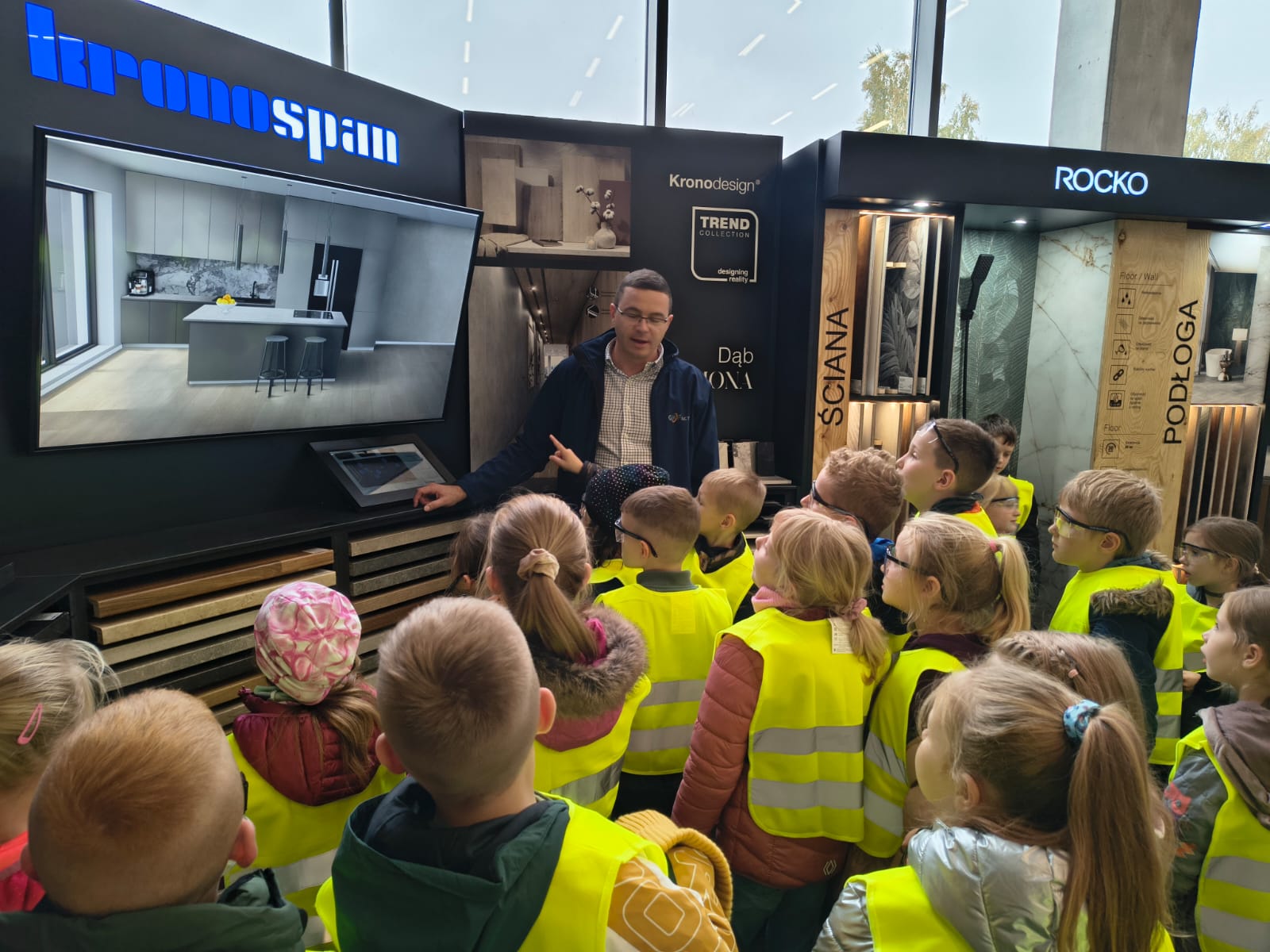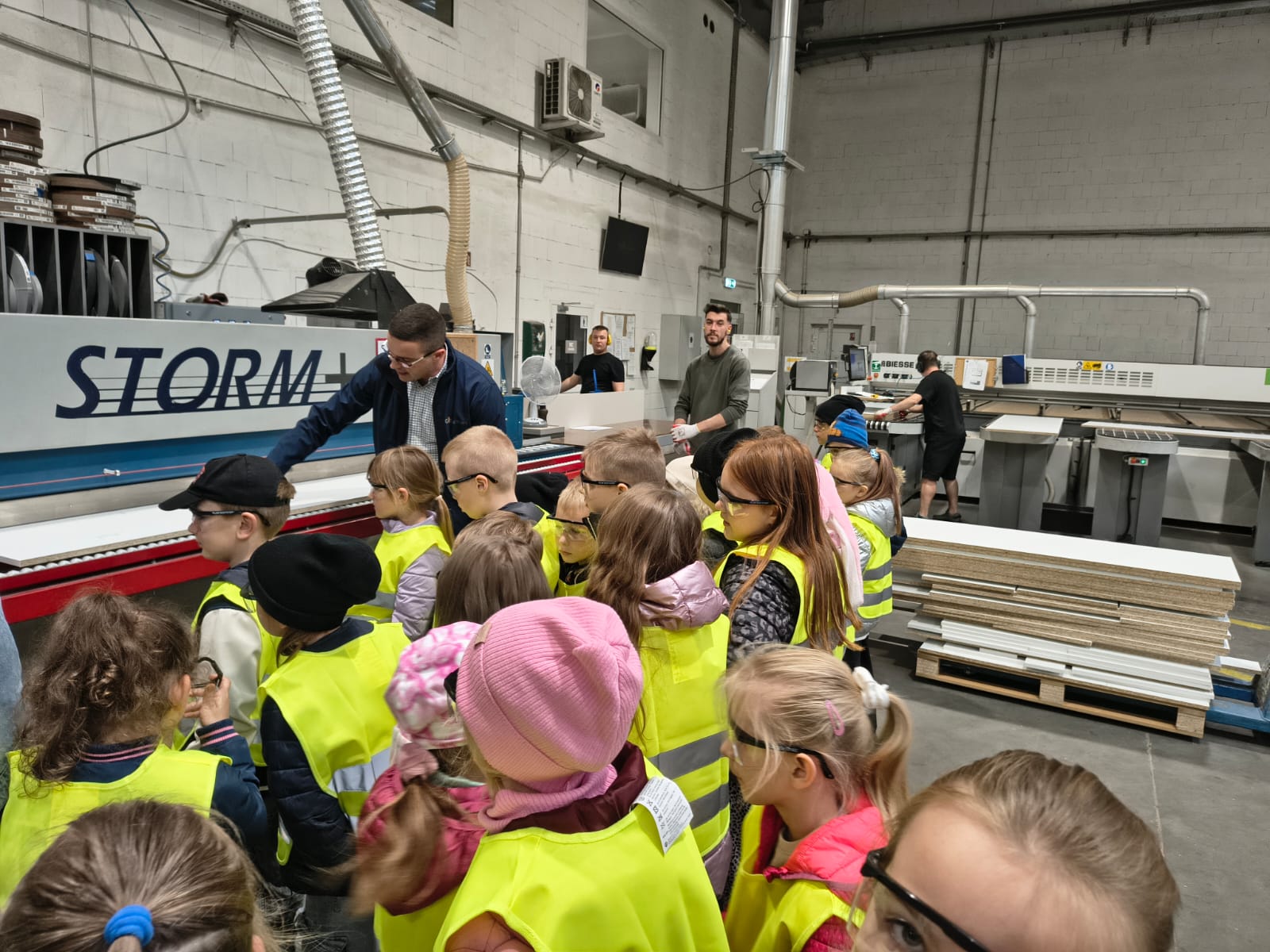 Uczniowie klas 2a i 1a oraz panie Marzena Kurzynoga, Katarzyna Wachowska i Lucyna Gromek 16 października zwiedzili GK Factory w Szczecinku. Po obejrzeniu prezentacji na temat ekologii i słodkim poczęstunku dzieci mogły zobaczyć jak powstają płyty meblowe i inne komponenty do produkcji mebli. Największym zainteresowaniem cieszyła się maszyna CNC, okleinarka i piła kątowa. Dzieci chętnie zadawały pytania a panowie Łukasz i Marcin cierpliwie odpowiadali i opowiadali jak to jest zrobione. Na koniec pobytu dzieci zobaczyły jak powstają projekty mebli i wnętrz. Uczniowie zebrali ze sobą z wycieczki mnóstwo wrażeń, prezenty od firmy i Legosława, który powstał na życzenie dzieci. Dziękujemy Panu Łukaszowi Nowakowskiemu za zaproszenie i pokazanie nieznanych dotąd rzeczy. To był wspaniały dzień ?