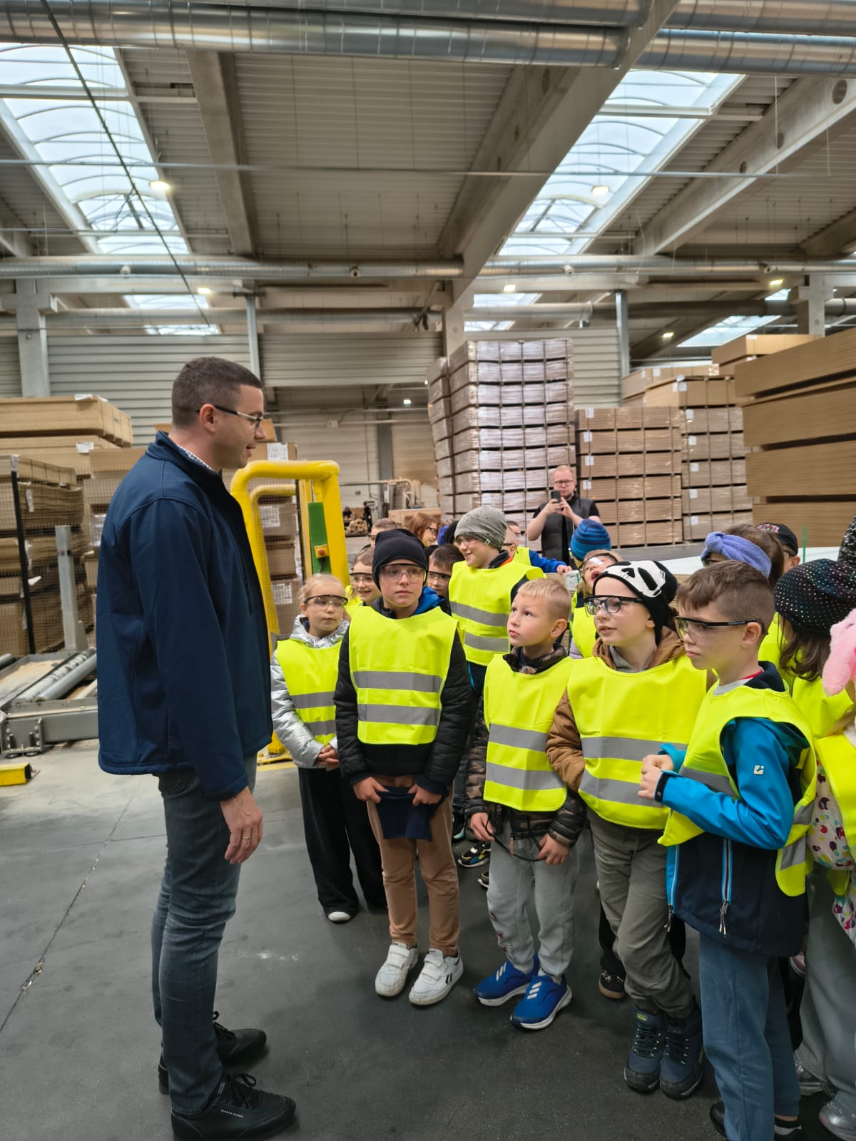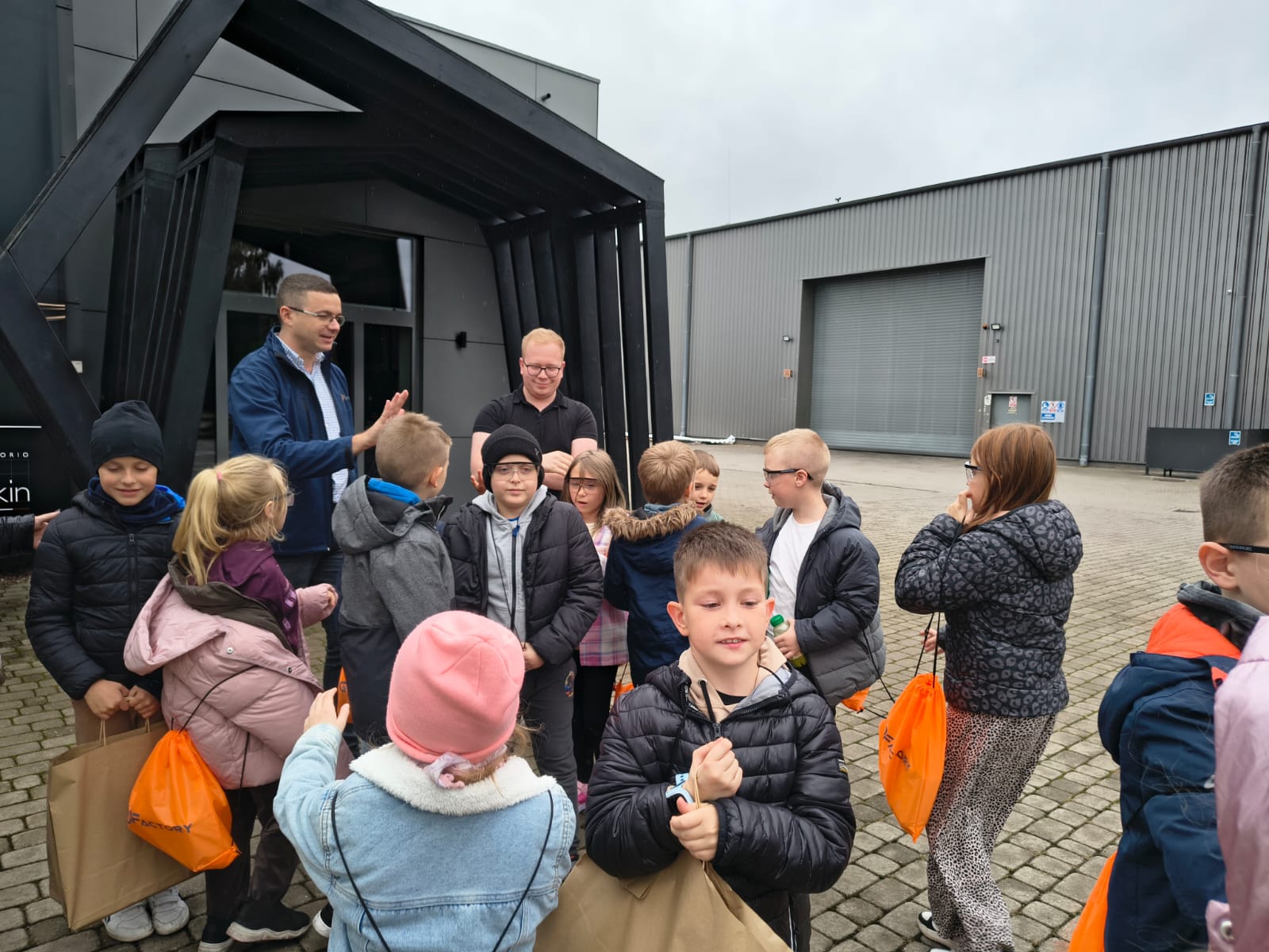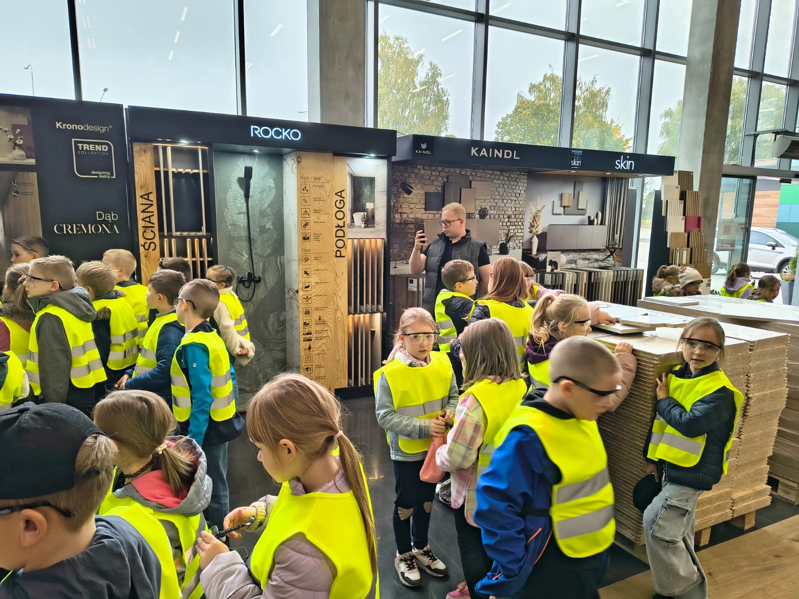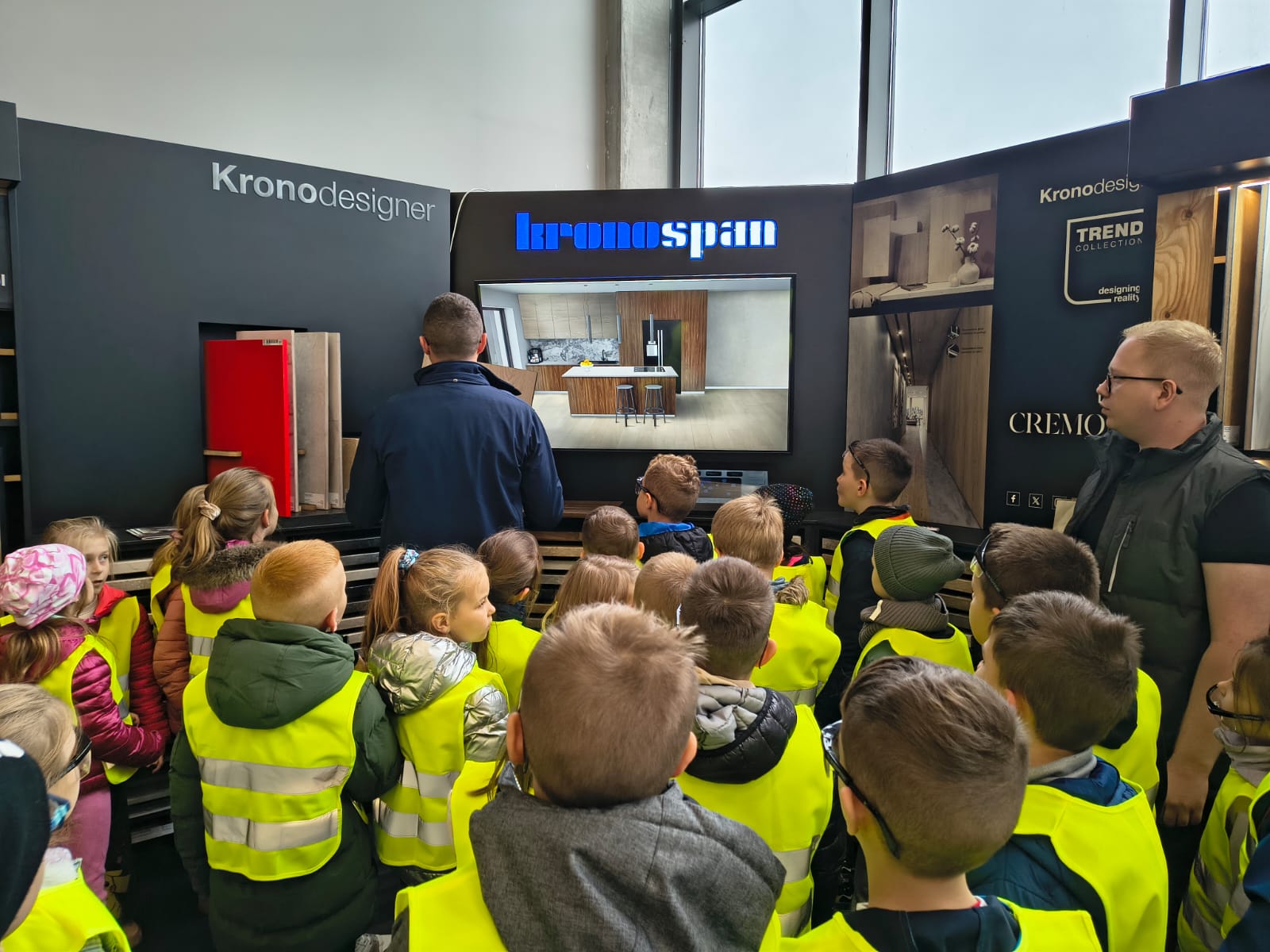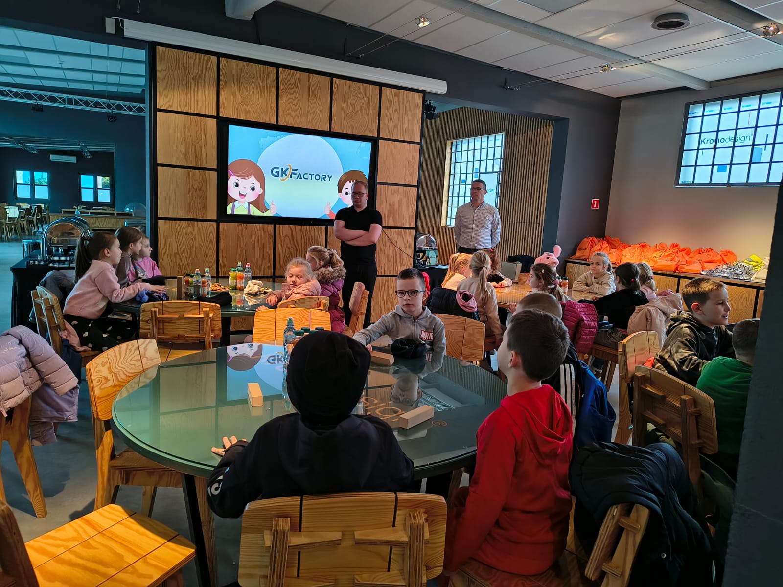 Uczniowie klas 2a i 1a oraz panie Marzena Kurzynoga, Katarzyna Wachowska i Lucyna Gromek 16 października zwiedzili GK Factory w Szczecinku. Po obejrzeniu prezentacji na temat ekologii i słodkim poczęstunku dzieci mogły zobaczyć jak powstają płyty meblowe i inne komponenty do produkcji mebli. Największym zainteresowaniem cieszyła się maszyna CNC, okleinarka i piła kątowa. Dzieci chętnie zadawały pytania a panowie Łukasz i Marcin cierpliwie odpowiadali i opowiadali jak to jest zrobione. Na koniec pobytu dzieci zobaczyły jak powstają projekty mebli i wnętrz. Uczniowie zebrali ze sobą z wycieczki mnóstwo wrażeń, prezenty od firmy i Legosława, który powstał na życzenie dzieci. Dziękujemy Panu Łukaszowi Nowakowskiemu za zaproszenie i pokazanie nieznanych dotąd rzeczy. To był wspaniały dzień ?