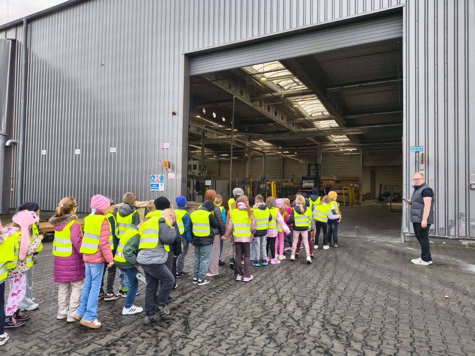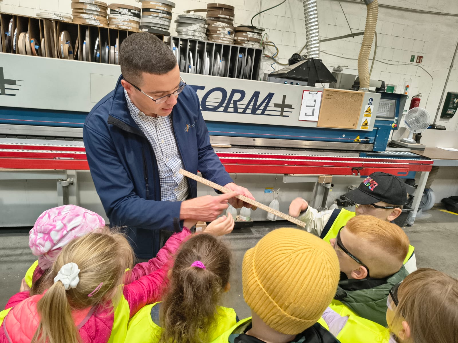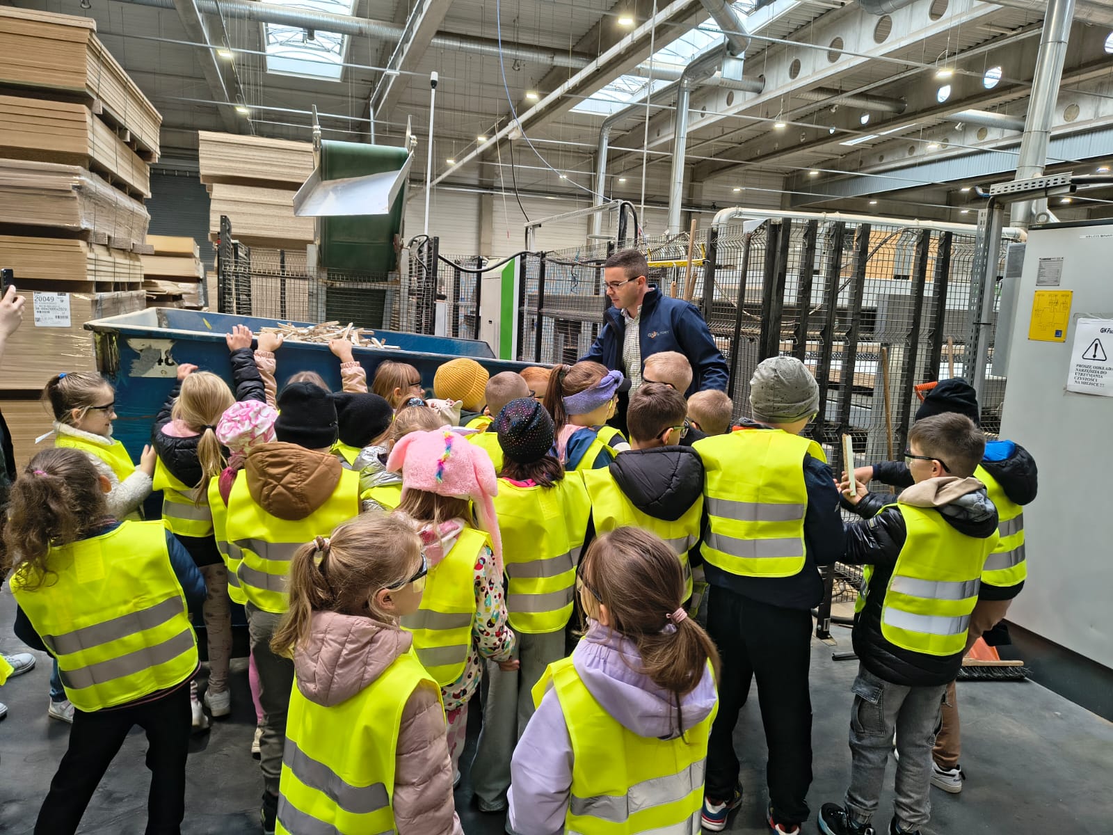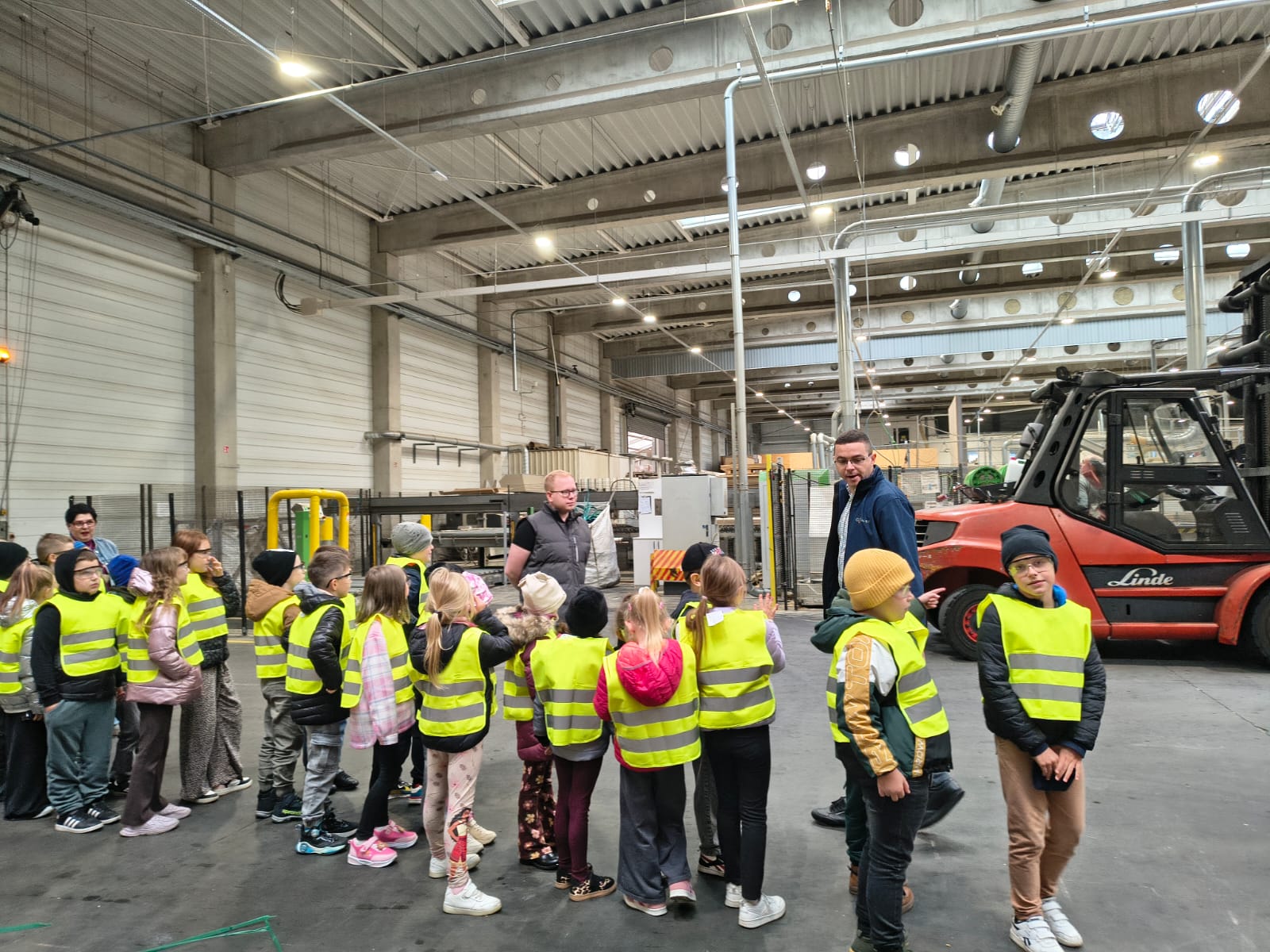 Uczniowie klas 2a i 1a oraz panie Marzena Kurzynoga, Katarzyna Wachowska i Lucyna Gromek 16 października zwiedzili GK Factory w Szczecinku. Po obejrzeniu prezentacji na temat ekologii i słodkim poczęstunku dzieci mogły zobaczyć jak powstają płyty meblowe i inne komponenty do produkcji mebli. Największym zainteresowaniem cieszyła się maszyna CNC, okleinarka i piła kątowa. Dzieci chętnie zadawały pytania a panowie Łukasz i Marcin cierpliwie odpowiadali i opowiadali jak to jest zrobione. Na koniec pobytu dzieci zobaczyły jak powstają projekty mebli i wnętrz. Uczniowie zebrali ze sobą z wycieczki mnóstwo wrażeń, prezenty od firmy i Legosława, który powstał na życzenie dzieci. Dziękujemy Panu Łukaszowi Nowakowskiemu za zaproszenie i pokazanie nieznanych dotąd rzeczy. To był wspaniały dzień ?